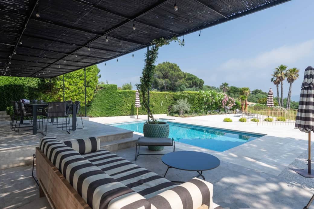 Diese stilvolle Villa vereint mediterranen Charme mit modernem Design. Hochwertige Materialien, großzügige Räume, elegante Bäder und eine offene Küche schaffen eine luxuriöse und zugleich entspannte Atmosphäre. Die große Terrasse mit Pool und Meerblick lädt zum Verweilen ein. Ein perfekter Rückzugsort für alle, die Ruhe, Stil und Komfort in Südfrankreich suchen.
